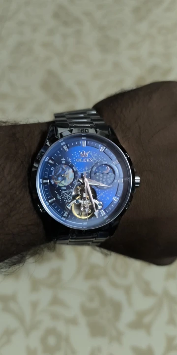 Refined Design: 42 mm case with luminous dial and moon phase complication for a sophisticated touch.